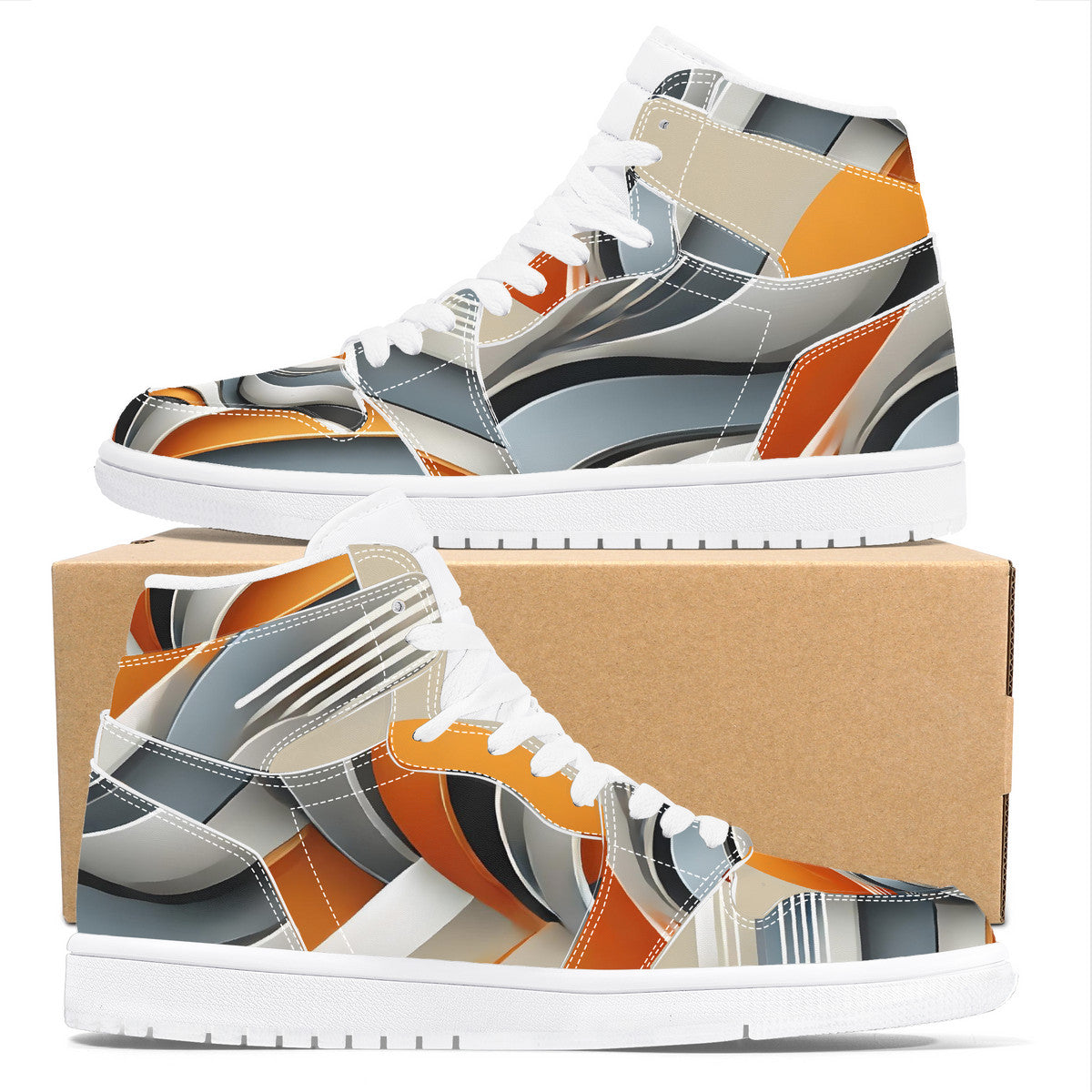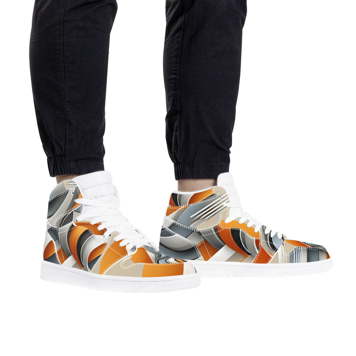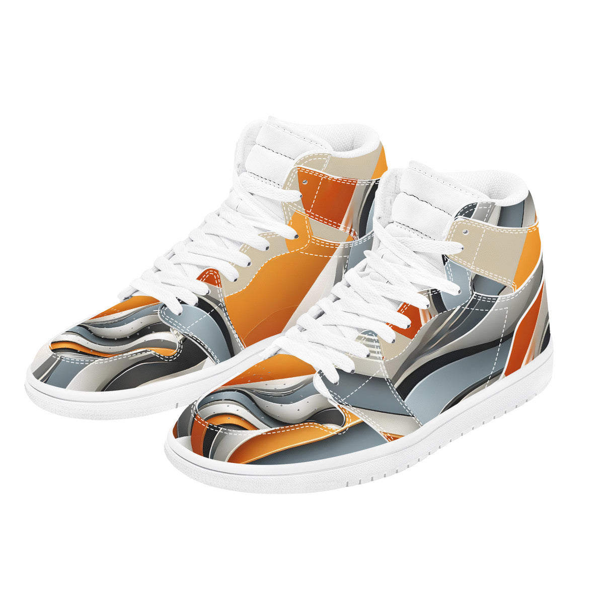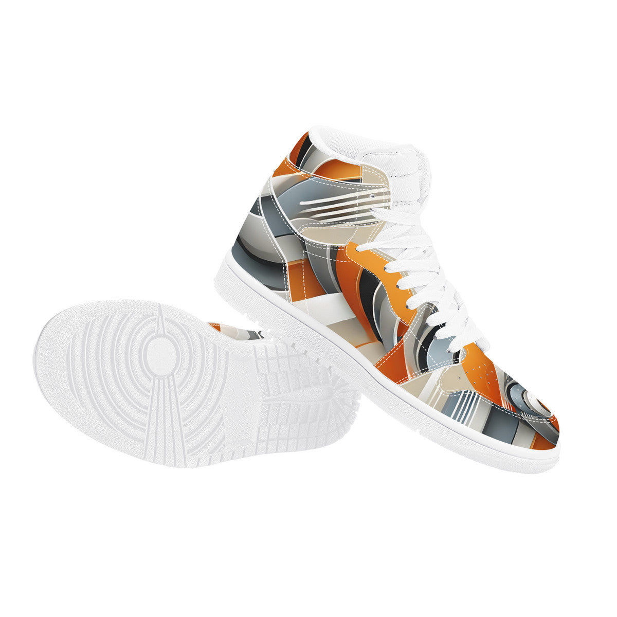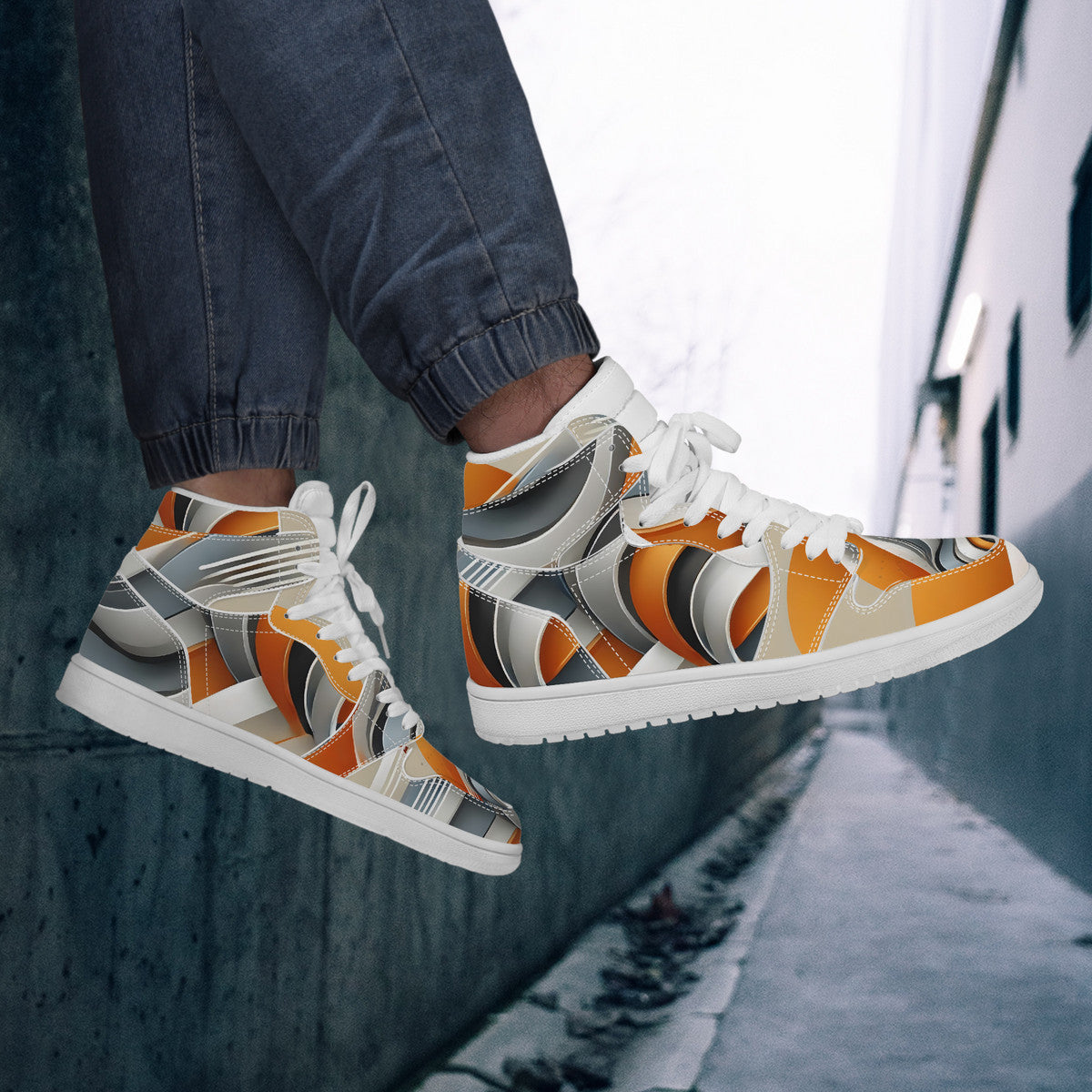 Gray & Orange High Top Synthetic Leather Sneaker