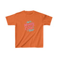 The kids heavy cotton tee is perfect for everyday use. The fabric is 100% cotton for solid colors. Polyester is included for heather-color. There are no seams along the sides.