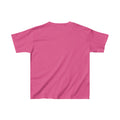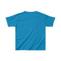 The kids heavy cotton tee is perfect for everyday use. The fabric is 100% cotton for solid colors. Polyester is included for heather-color. There are no seams along the sides.